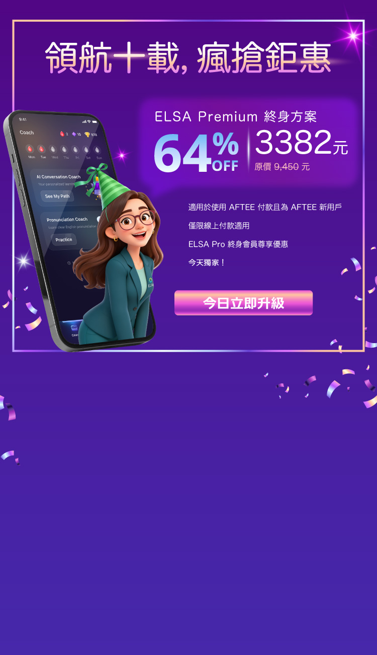 和 ELSA 一起線上學英文,提供最充足的英語技能練習和資料庫