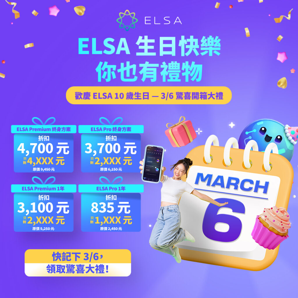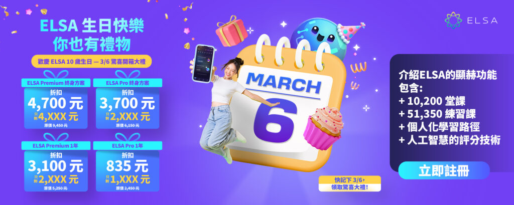 立即下載 ELSA Speak,每天只需學習 10 分鐘,即可掌握文法,提升發音和反應能力!