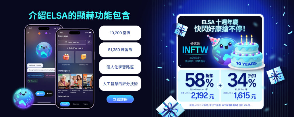 閲讀更多:19 個家教從基礎到高級推薦英文線上課程匯總:比較2024年每門最熱門英文線上課程的成本、評價、優缺點- ELSA Speak Taiwan