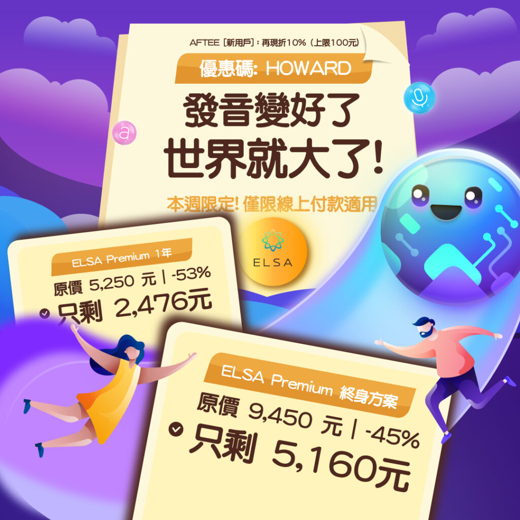 ELSA Premium 一年:原價:5,250元 現在 2,476 元