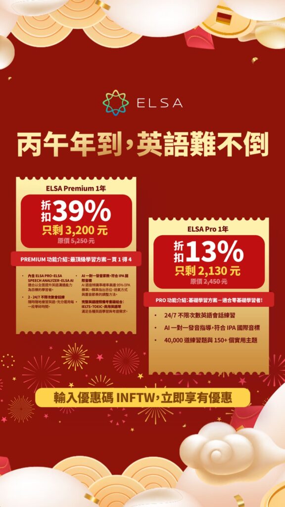 ELSA Premium 一年:原價:5,250元 現在 3,200 元