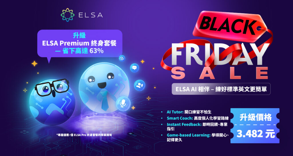現在就點擊這裡升級至 ELSA Premium 終身套餐 —— 機會不再重來,請立即行動,別讓自己錯過本次 Black Friday 是全年最值得升級的時刻!