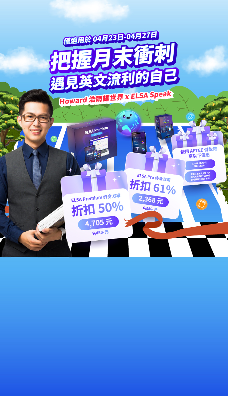 關於ELSA 的促銷計劃,ELSA 定期在一年中的特殊時間舉辦促銷計劃/促銷活動,例如母親節、國際兒童節等。您可以透過ELSA 的溝通管道關注信息,例如:ELSA Speak Facebook 頁面、電子郵件(在ELSA 應用程式註冊帳戶的電子郵件)。